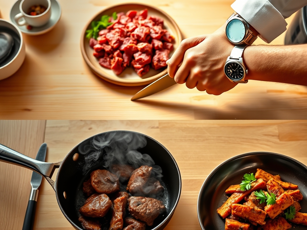To optimize your time, always boil your water first if pasta or rice is involved. While the water reaches its boiling point, use your bench scraper to move chopped veggies into neat piles. Never wait for one component to finish before starting the next; the goal is for the beef to reach its peak temperature exactly when your starch is perfectly al dente. This synchronization ensures that no element of the dish loses its structural integrity while sitting under a heat lamp or on a cold counter.