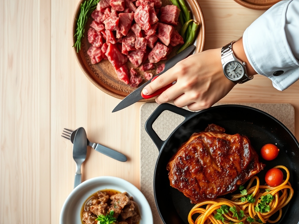 The flow begins with the "Cold Prep" (chopping vegetables) and moves into the "Active Sear." Never crowd the pan; doing so drops the surface temperature of your skillet, causing the meat to steam in its own juices rather than brown. If you are making multiple dishes for meal prep, use a digital scale to portion your meat exactly, ensuring consistent cook times across the board.